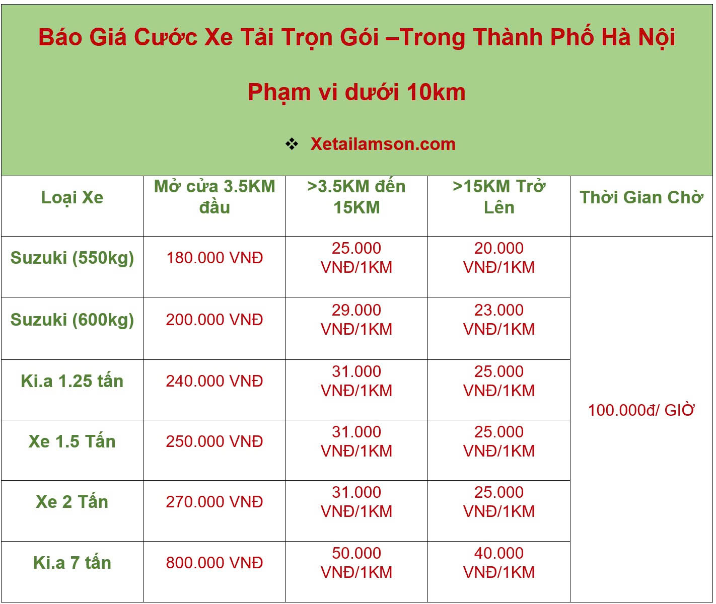 Báo giá cước xe tải đi trong phố nội thành hà nội, bảng giá cước mới cập nhật từ 01 – 07 – 2025 – Nhận chở hàng, cho thuê xe tải chở hàng hà nội đi tỉnh